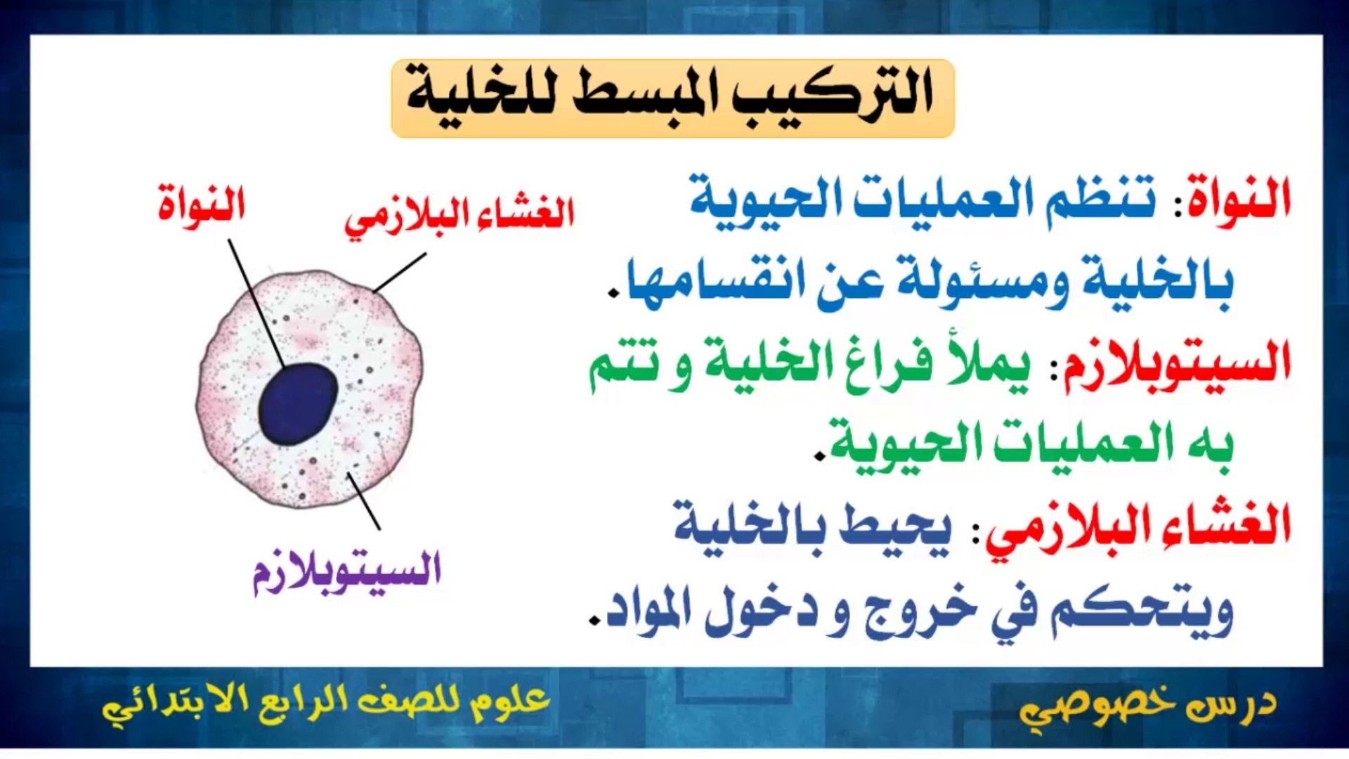 العلوم للصف الرابع الابتدائي الخلية وحدة بناء الكائن الحي