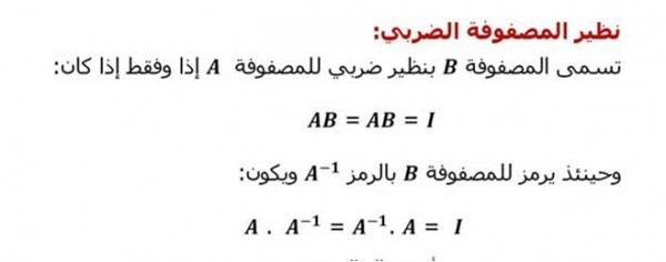 شرح درس النظير الضربي للمصفوفة وانظمة المعادلات الخطية موقع واجباتي