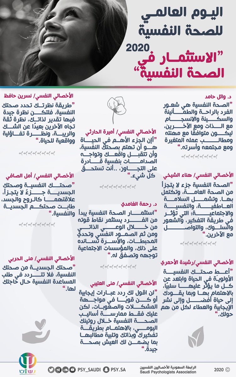 علي الغفيلي On Twitter 10 أكتوبر اليوم العالمي للصحة النفسية الله يجعل نفوسكم هادئة مطمئنة سالمة ومعافاة