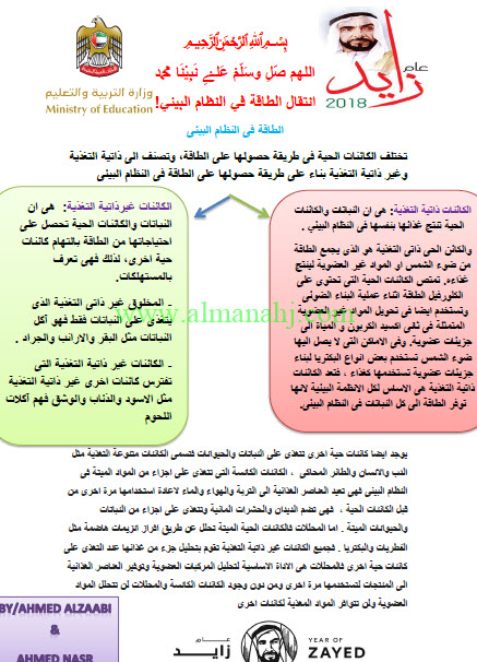 حل درس انتقال الطاقة في النظام البيئي أحياء صف تاسع متقدم فصل ثالث مدرستي الامارتية