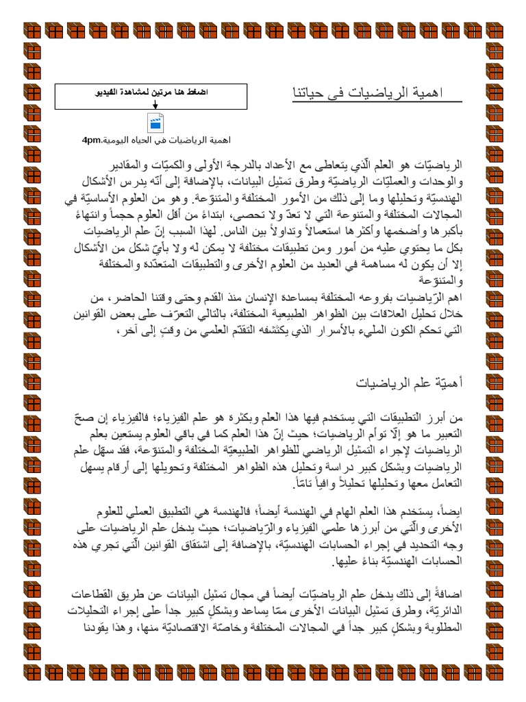 بحث عن الرياضيات في حياتنا اليوميه ملزمتي