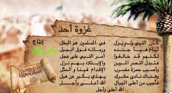 O Xrhsths السيرة النبوية Sto Twitter نعتذر عن التأخر في تنزيل نشيد غزوة بدر موضوع يوم غد الأحد هو غزوة أحد نشيد غزوة أحد Http T Co Axxojggs4m