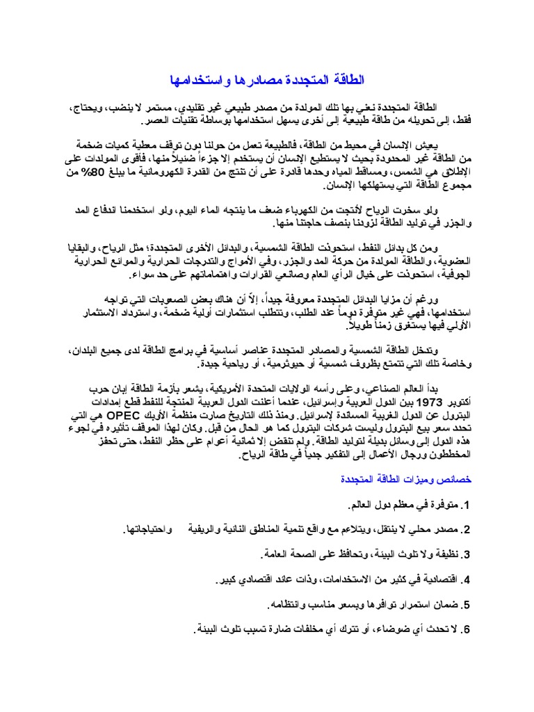 الطاقة المتجددة مصادرها واستخدامها Docx