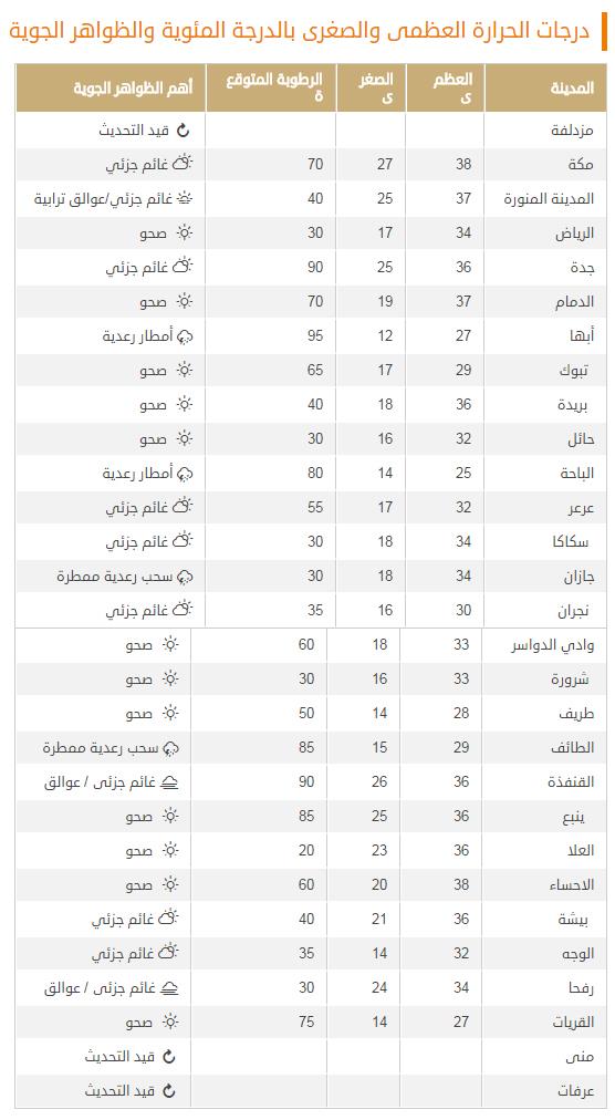 السعودية حالة الطقس ودرجات الحرارة العظمى والصغرى المتوقعة يوم الأحد 2020 3 8 طقس العرب