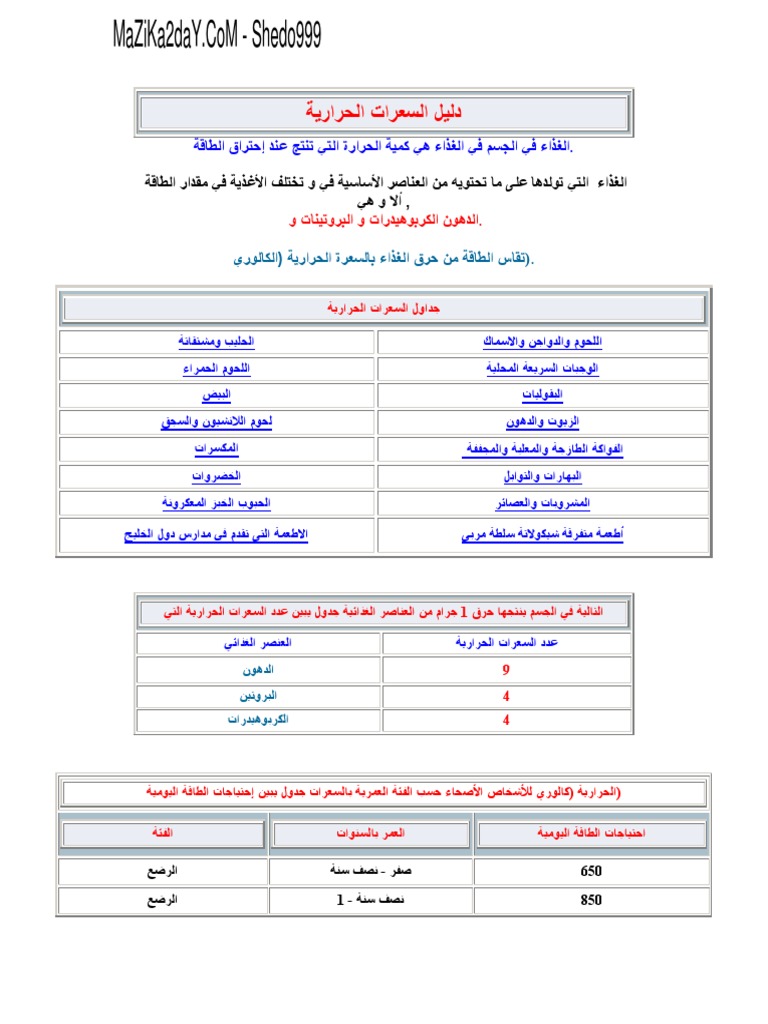دليل السعرات الحرارية Pdf