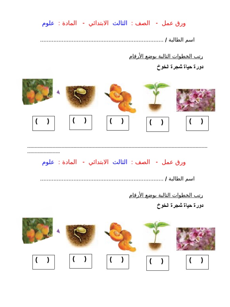 دورة حياة شجرة الخوخ ثالث ابتدائي