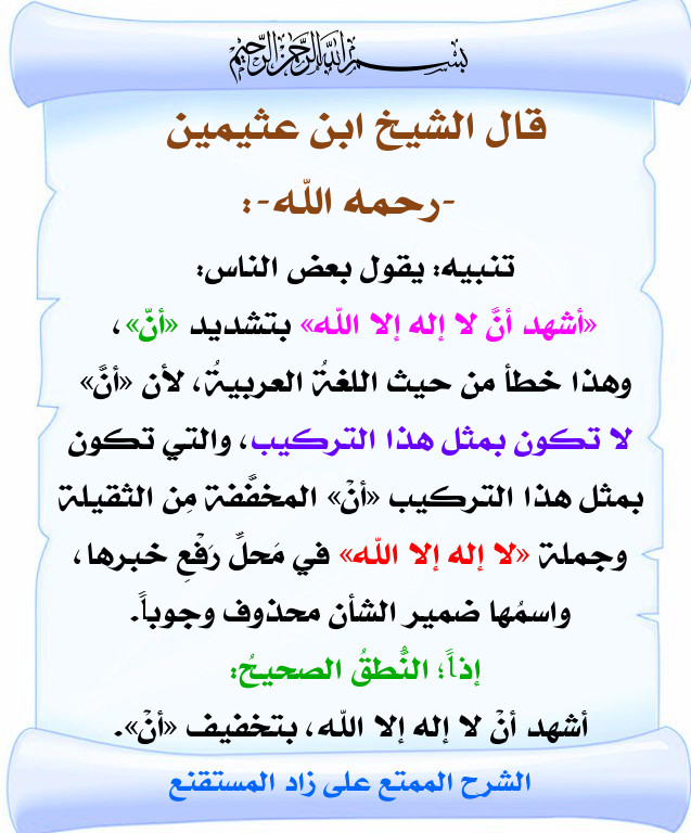 خطأ في نطق شهادة أن لا اله الا الله لابن عثيمين رحمه الله بطاقات دعوية منتديات الإمام الآجري