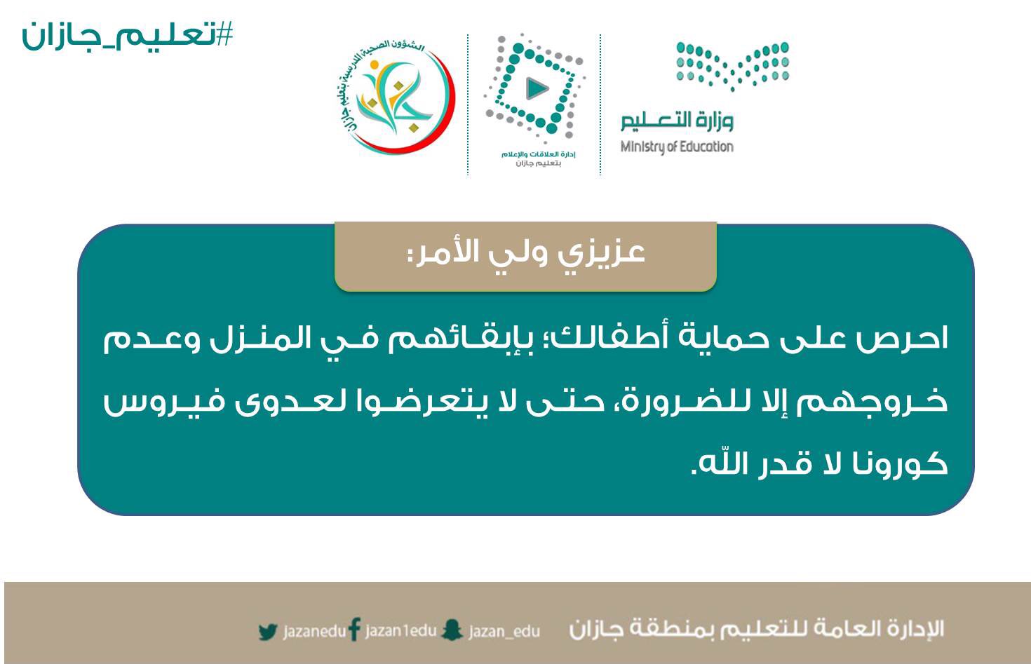 إدارة تعليم جازان On Twitter كلنا مسؤول الشؤون الصحية المدرسية بـ تعليم جازان تقدم رسائل توعوية للطلاب وأولياء الأمور للوقاية بإذن الله من فيروس كورونا وزارة التعليم Https T Co 0zjllntluf