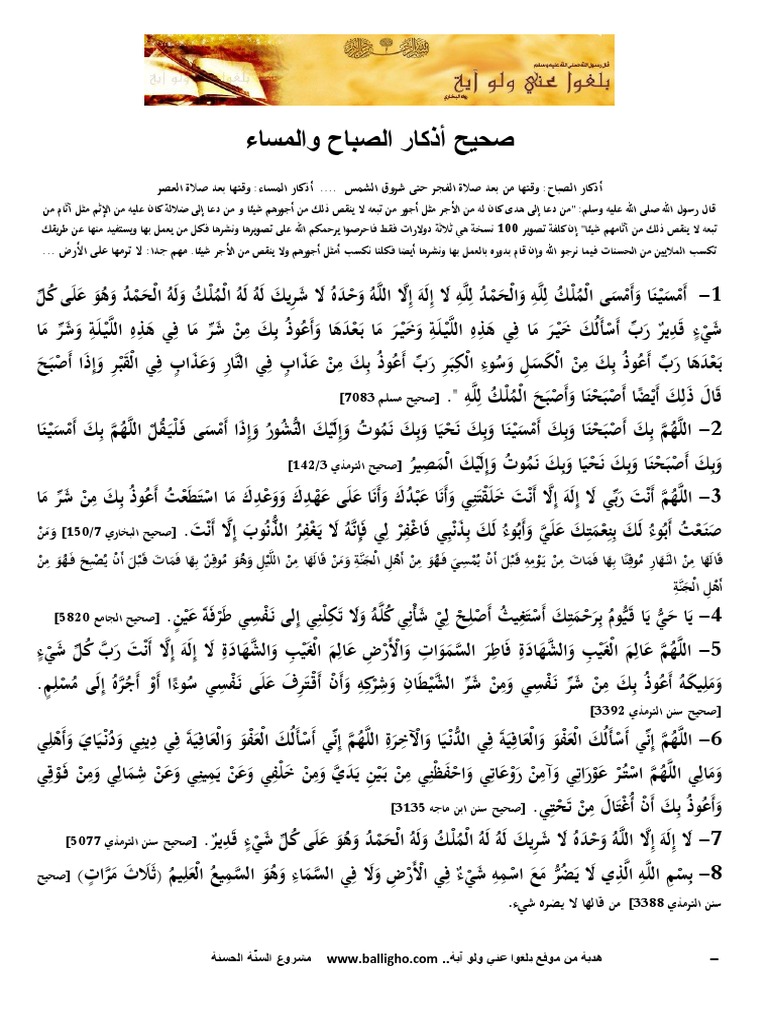صحيح أذكار الصباح والمساء Pdf