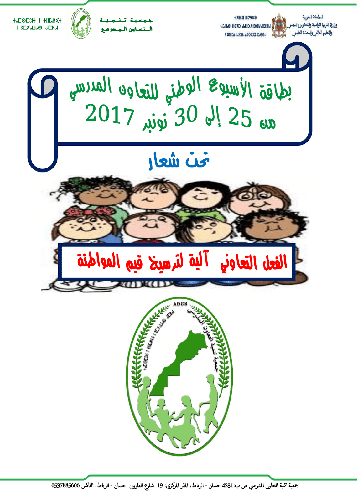 الأسبوع الوطني للتعاون المدرسي من 25 إلى 30 نونبر 2017 تحت شعار الفعل التعاوني آلية لترسيخ