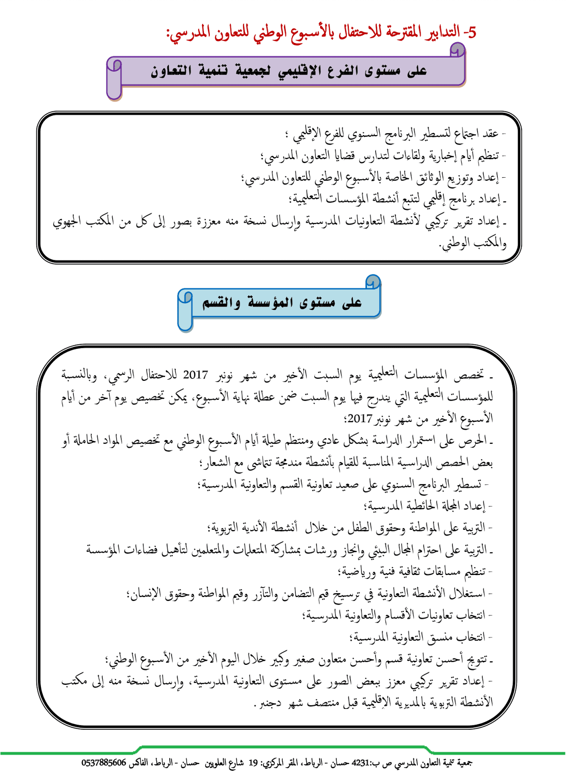 وثائق خاصة بالأسبوع الوطني التعاون المدرسي