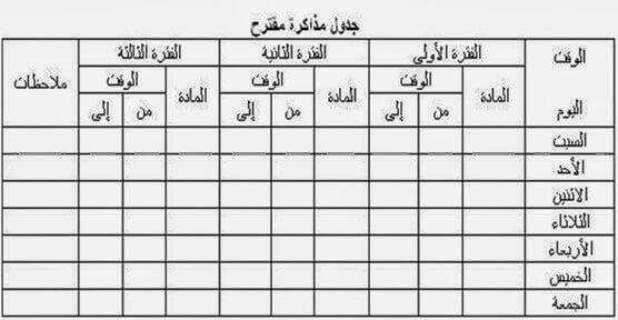 للمذاكرة جدول تنظيم الوقت اليومي للدراسة