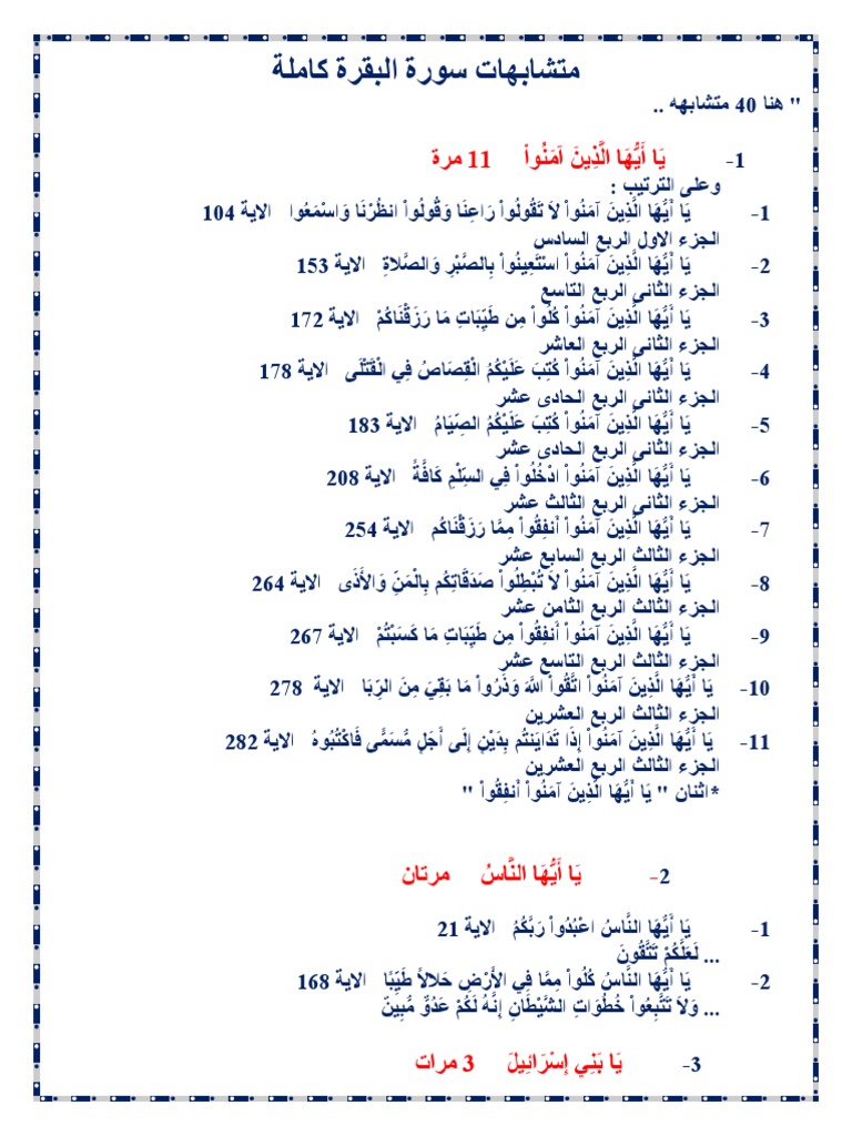 متشابهات الجزء الاول من سورة البقرة Pdf