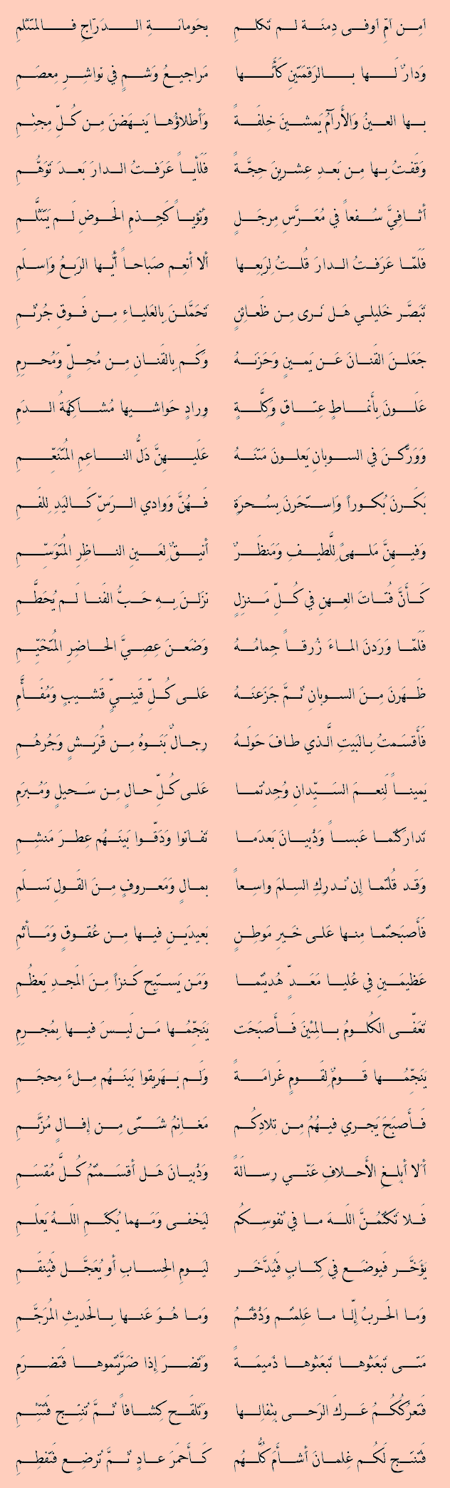 معلقة زهير بن ابي سلمى. أ م ن أ م أ و ف ى د م ن ـة ل م. ز هير بن أبي س ل مى المزني 520 609 م أحد أشهر شعراء العرب وحكيم الشعراء في الجاهلية وهو أحد الثلاثة المقدمين على سائر الشعراء وهم. معلقة زهير بن أبي سلمى. زهير بن أبي سلمى.
