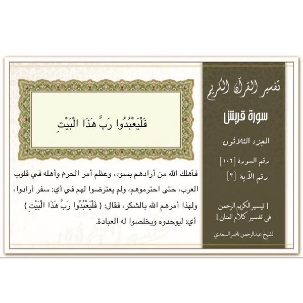 تفسير القرآن On Twitter ف ل ي ع ب د وا ر ب ه ذ ا ال ب ي ت 3 تفسير تفسير السعدي تفسير القرآن رتويت لتذكير رتويت تدبر القرآن Http T Co F011t2suoi