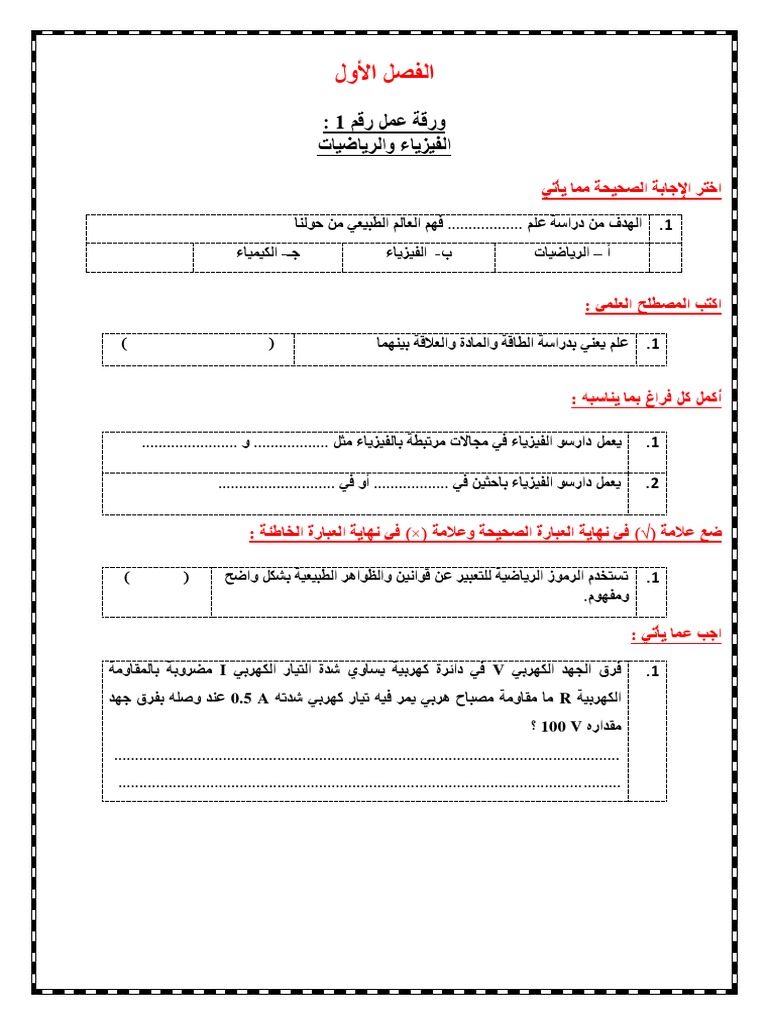 اوراق عمل عن الفيزياء