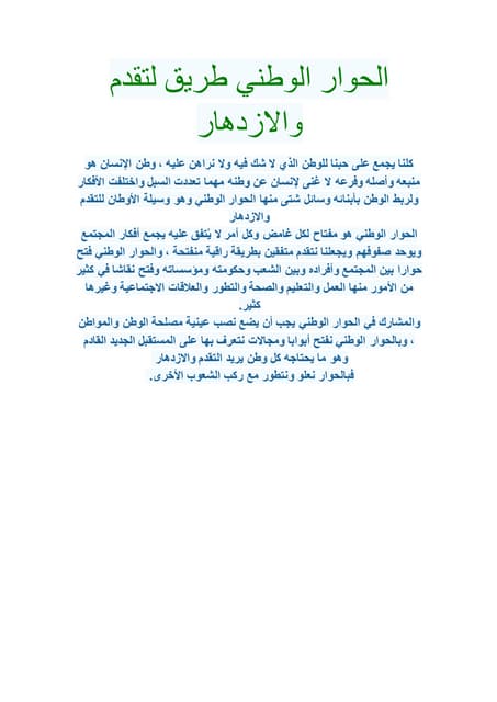 موضوع عن الحوار الوطني طريق للتقدم والازدهار موسوعة نت